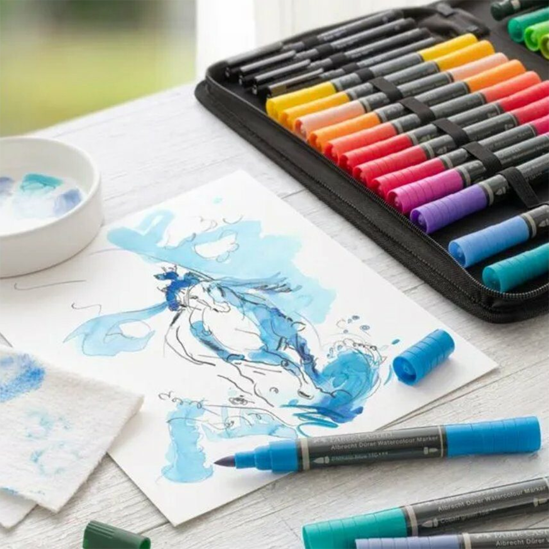 Faber-Castell Albrecht Durer MarkerAn artist’s watercolour in a pen, the Albrecht Durer Marker offers sketching and watercolour painting to the traveller and studio artist. Available in 30 highly pigmented colours, the soft, brush tip is excellent for dynamic sketches, and the fine point for outlines and detailed drawings. https://www.gordonharris.co.nz/category/4734-faber-castell-albrecht-durer-watercolour-markers |