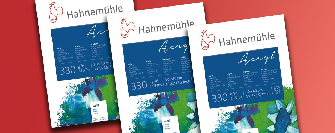 Hahnemühle Acryl PaperAcryl 330gsm has a subtle linen texture and its slightly glossy surface allows more time for paint application, due to its reduced absorbency. Acryl 330gsm is particularly suited for thicker paint techniques, and doesn’t need to be stretched before being used. The artist can work right on the 20 sheet block or on a cut-off sheet of paper – the paper remains smooth anyway. The Hahnemühle Acryl Paper comes with 20 sheets of 330gsm paper in 24cm x 32cm and 30cm x 40cm sizes. |