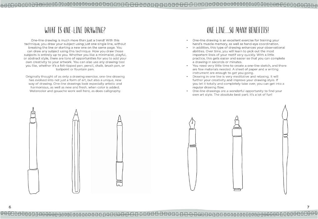 Use a single continuous line to make beautiful art, all in 15 minutes or less! This interactive instructional book includes space for you to practice directly on the pages as you learn.