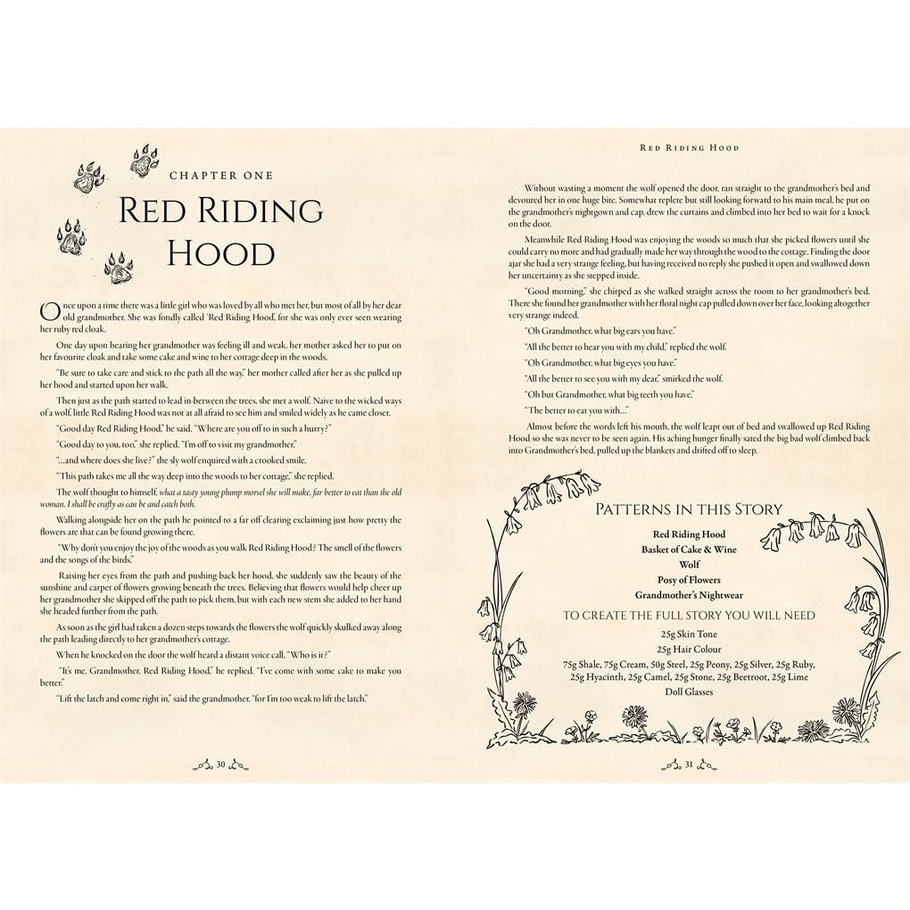 Whether it’s Red Riding Hood’s cunning wolf, the towering beanstalk Jack climbs, or the tiny magic of Thumbelina, every project is infused with storytelling sorcery. Each story is paired with a unique retelling, along with easy-to-follow step-by-step instructions and clearly photographed techniques - making this the perfect pattern book for crocheters of all skill levels.